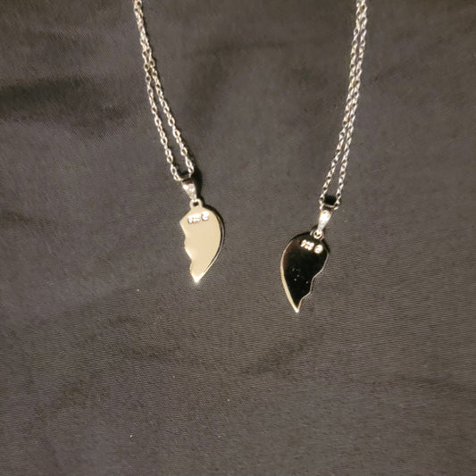 Pendant Engraved with Forever Yours. Two Necklace with Heart Pieces